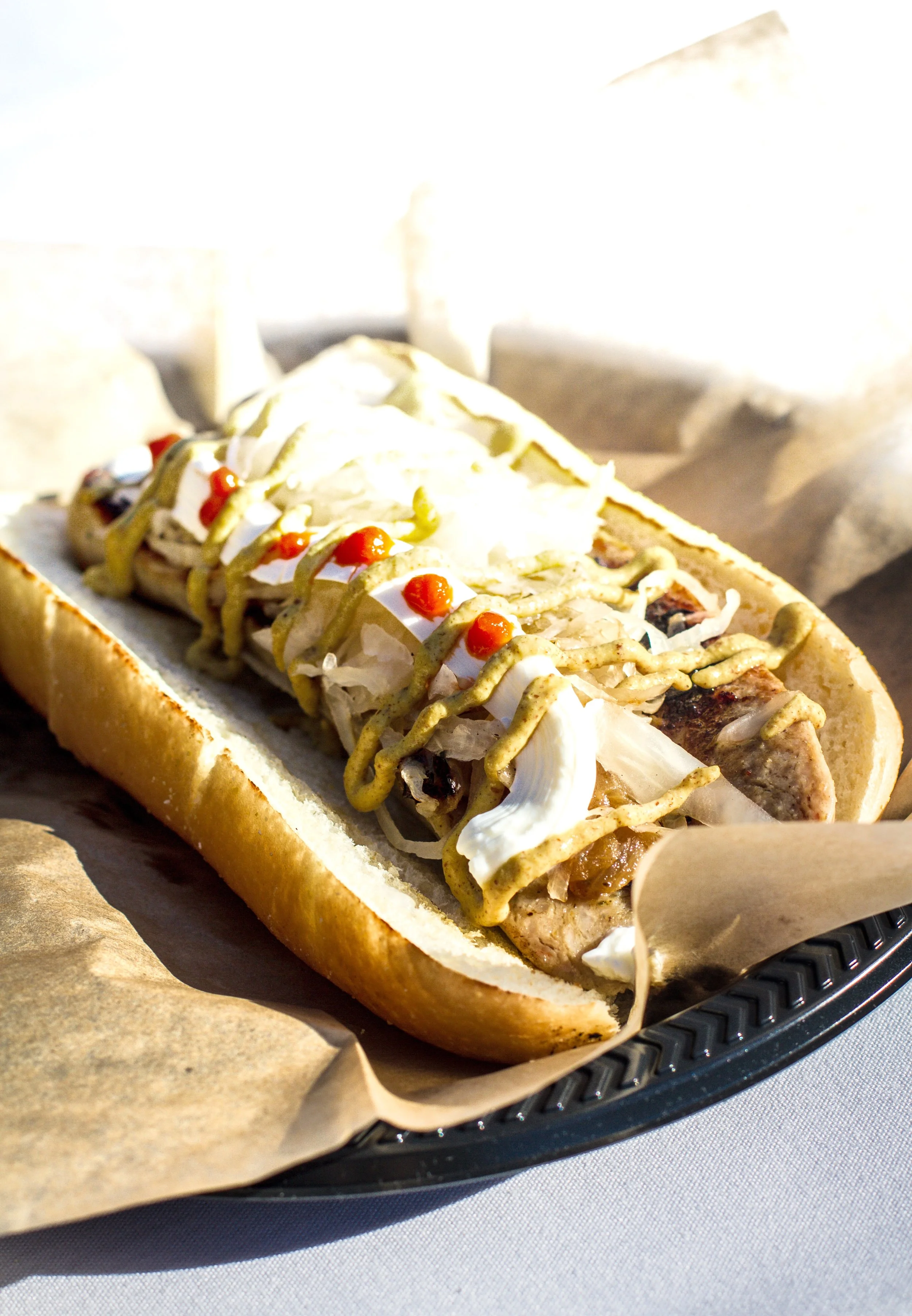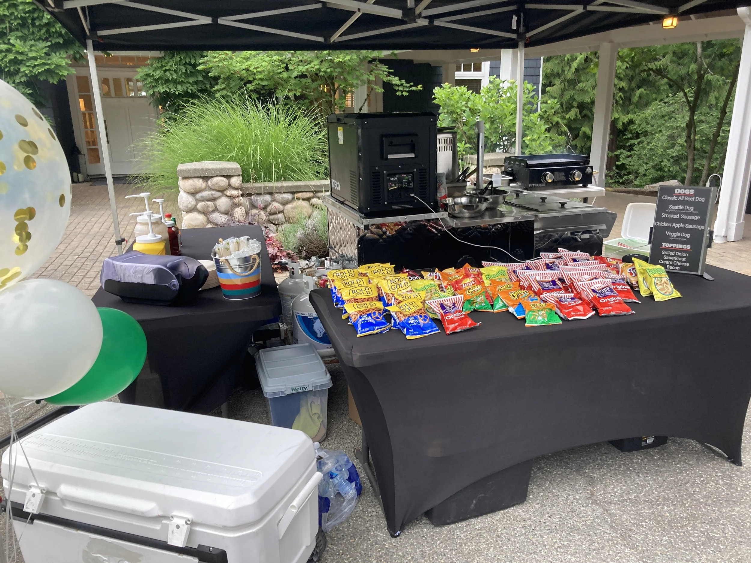 All our dogs come resting on a toasted, full size roll and can be customized to your taste! Seattle Dogs are a crowd favorite, topped with house made grilled onions and cream cheese. Guests can top our beef dogs with grilled onions, sauerkraut, jalapeños, all kinds of mustards, as well as ketchup and a selection of hot sauces. All our events include vegan hot dogs.